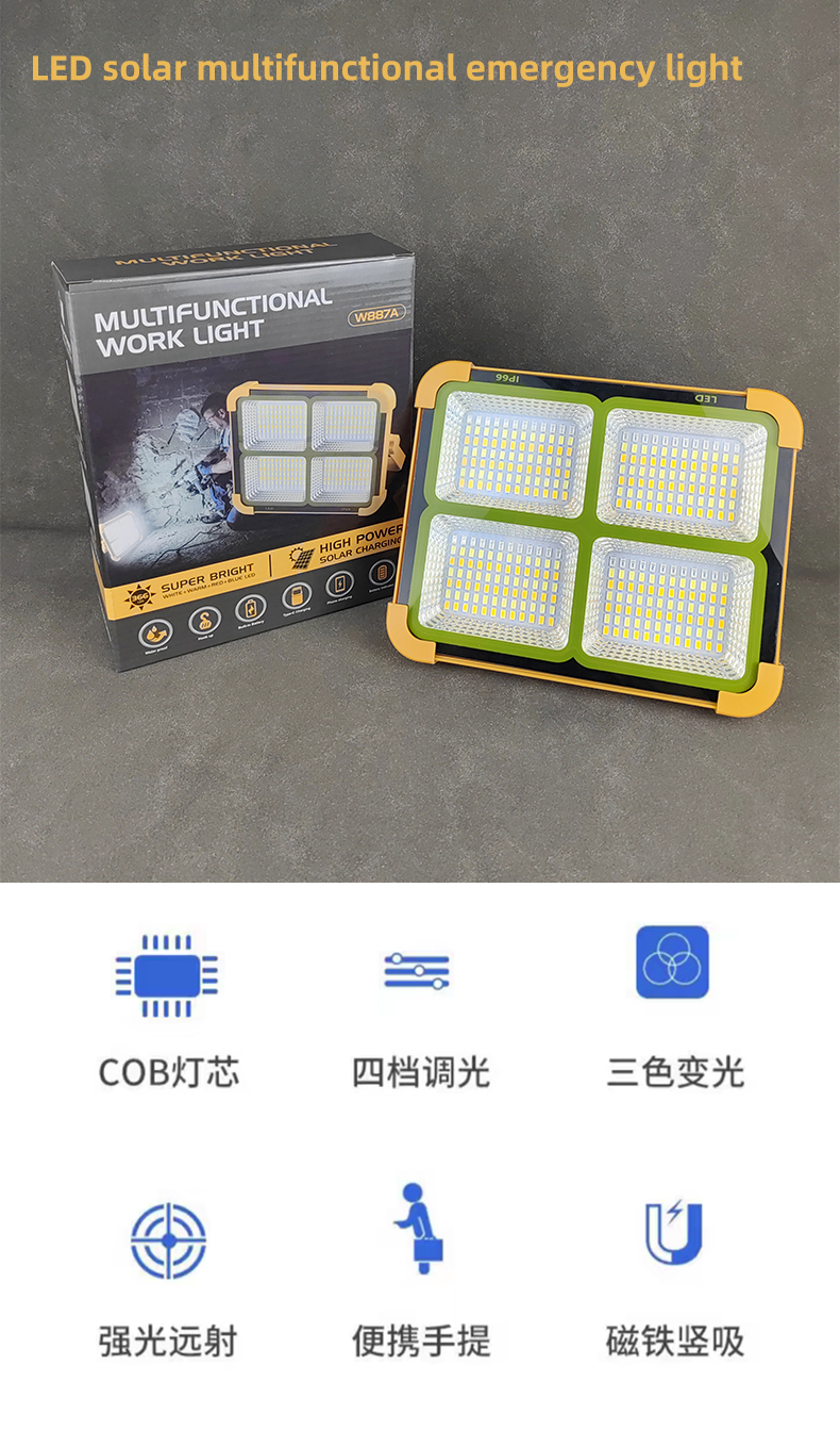 Second, it has an adjustable stand that can be easily positioned and tilted to provide optimal lighting in any workspace. The inclusion of a hook for hanging further enhances its practicality, allowing users to conveniently hang the light for hands-free operation. In addition, the LED work light offers the convenience of two charging methods - USB and solar, providing flexibility and ensuring power can be provided in a variety of environments.